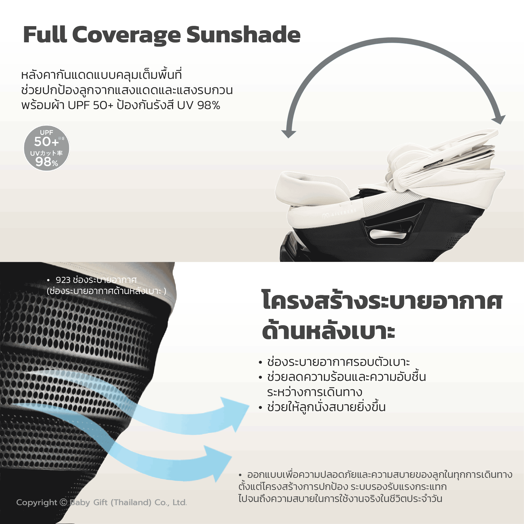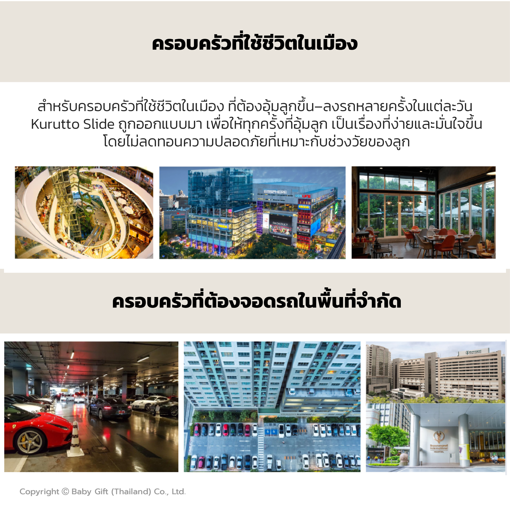 เข้าใจเลยค่ะว่าแม่หลายคนกังวลเรื่องนี้ Kurutto Slide ออกแบบให้ระบายอากาศได้ดีรอบตัว ลดความอับชื้น เหมาะกับอากาศเมืองไทย—ลูกนั่งสบาย ไม่ร้อน ไม่อึดอัด จึงพักผ่อนได้ดีขึ้น