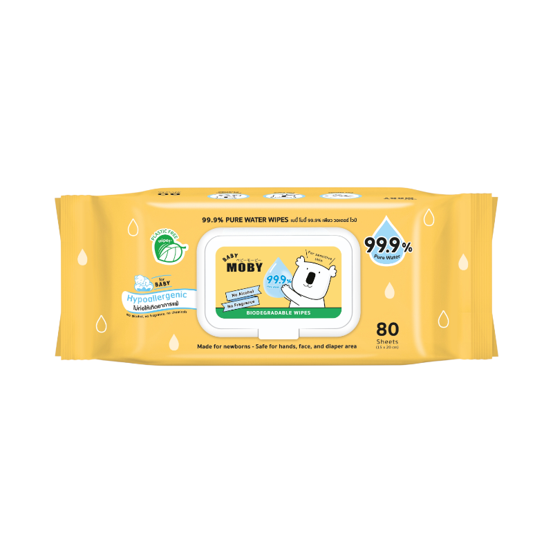 BABY MOBY ผ้าเช็ดทำสะอาด 99.9% เพียววอเตอร์ (Baby Wipe) 80 แผ่น