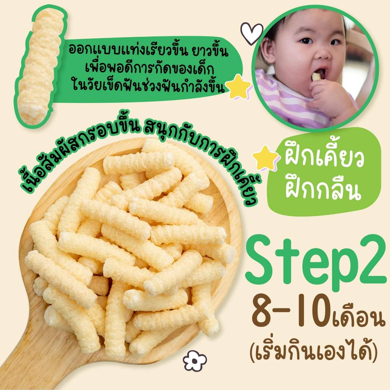 Step 2 สำหรับอายุ 8-10 เดือน ฝึกพัฒนาการเคี้ยว และการทานด้วยตนเอง