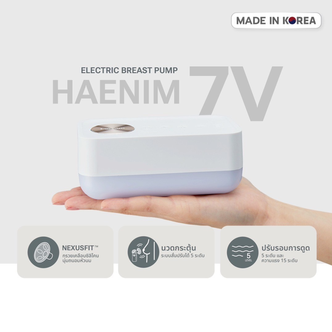 เครื่องปั๊มนม Haenim รุ่น 7Vดูดลึกอย่างนุ่มนวล ปั๊มสบาย พกพาสะดวก ตอบโจทย์คุณแม่มือใหม่ผลิตและนำเข้าจากประเทศเกาหลี ผ่านการตรวจสอบเเละได้รับการรับรองมาตรฐาน อย. ไทย กรวยปั๊มนมมีให้เลือก 2 แบบ