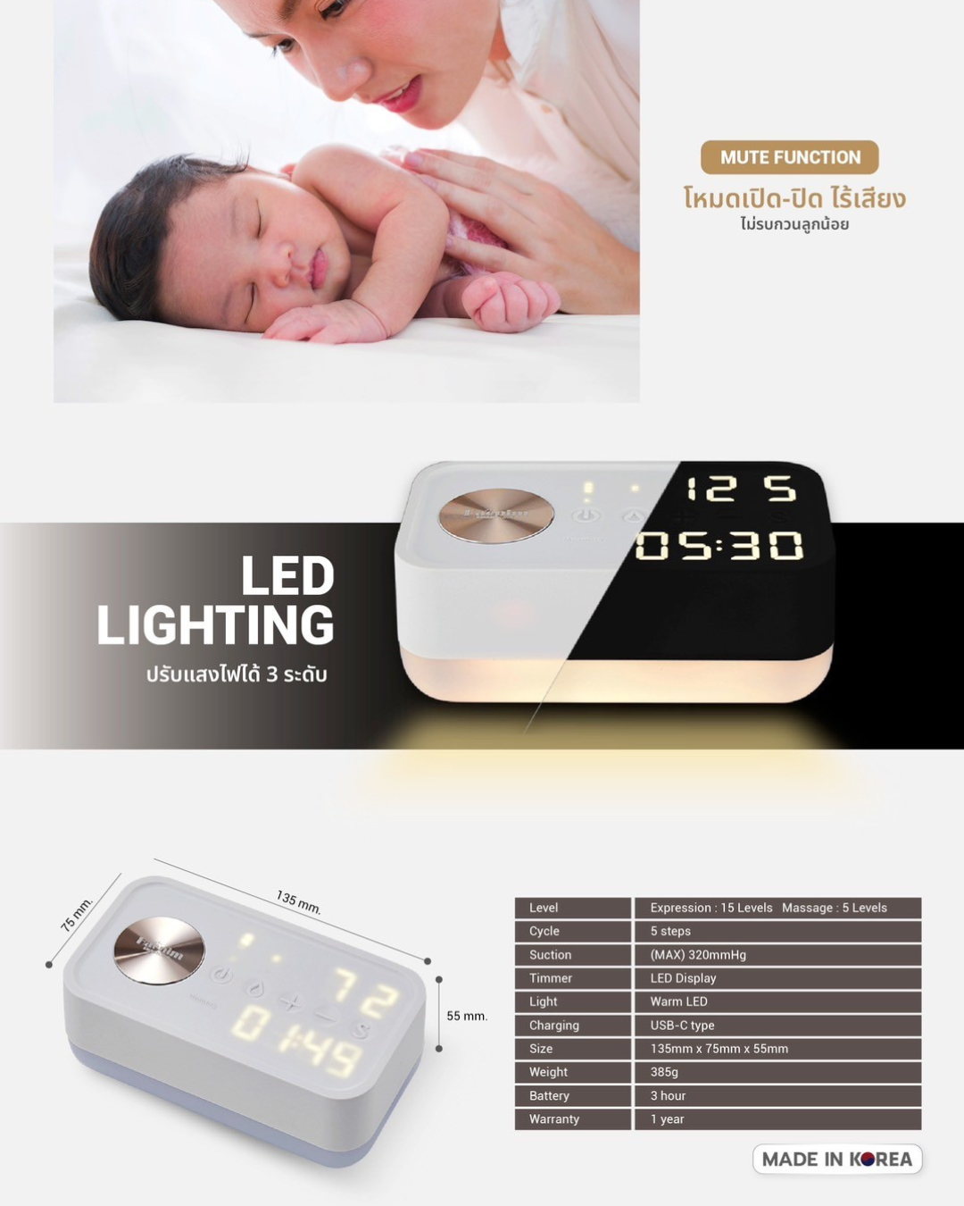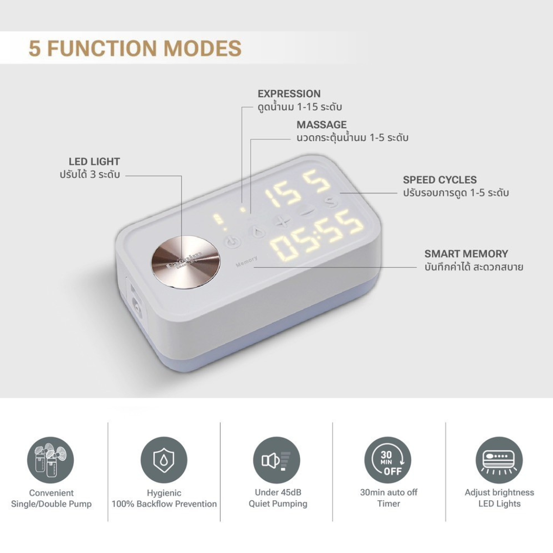 โหมดการใช้งานปรับได้ทั้งความแรงและความเร็วรอบดูดในเครื่องเดียว เพิ่มทางเลือกให้ตรงใจแม่มากที่สุด ถึง 75 รูปแบบ