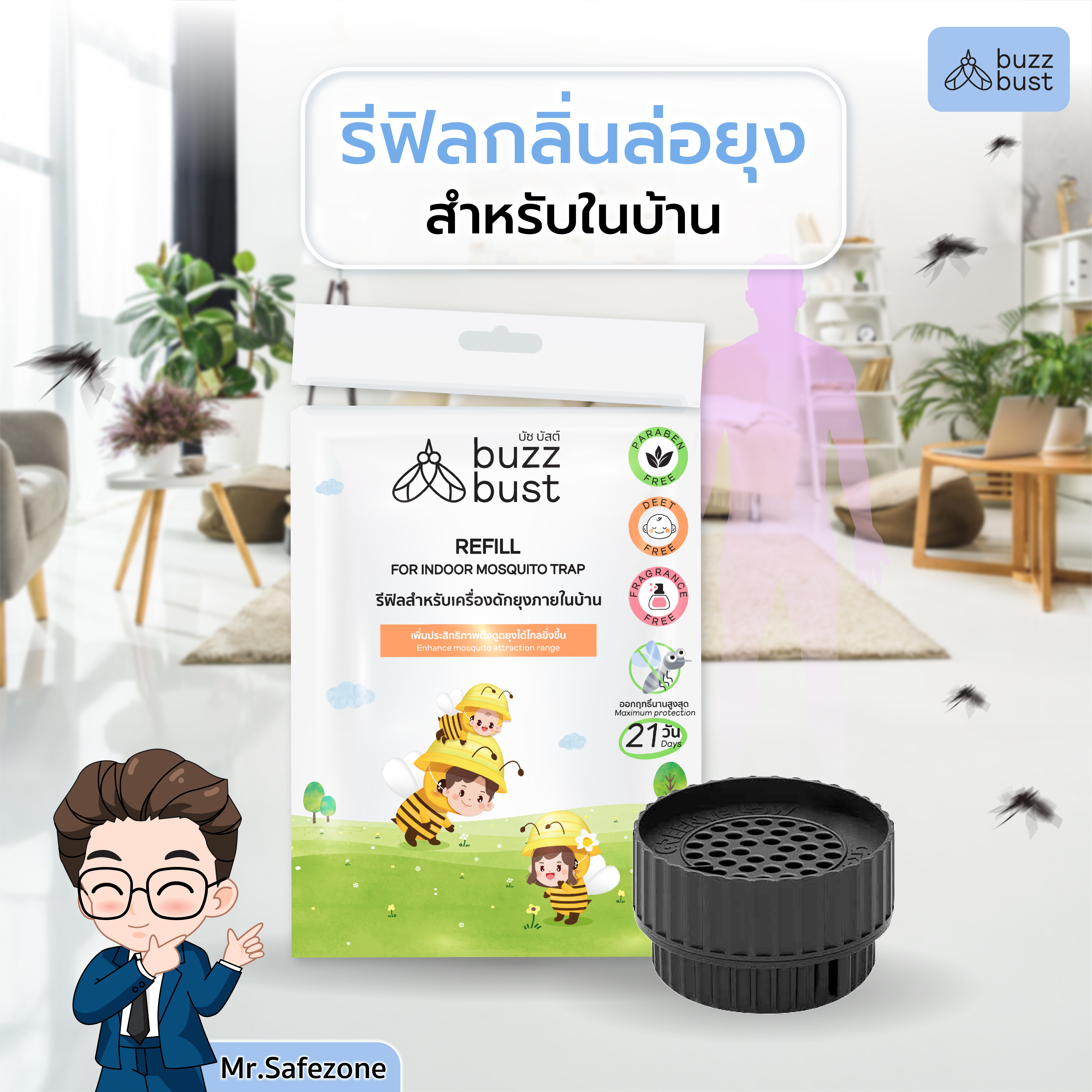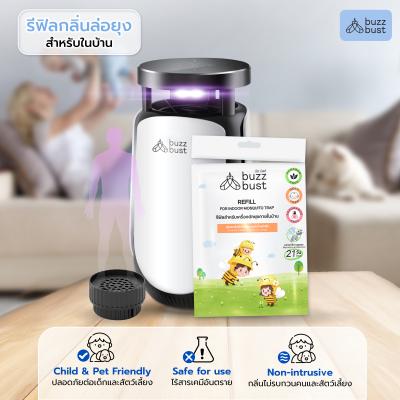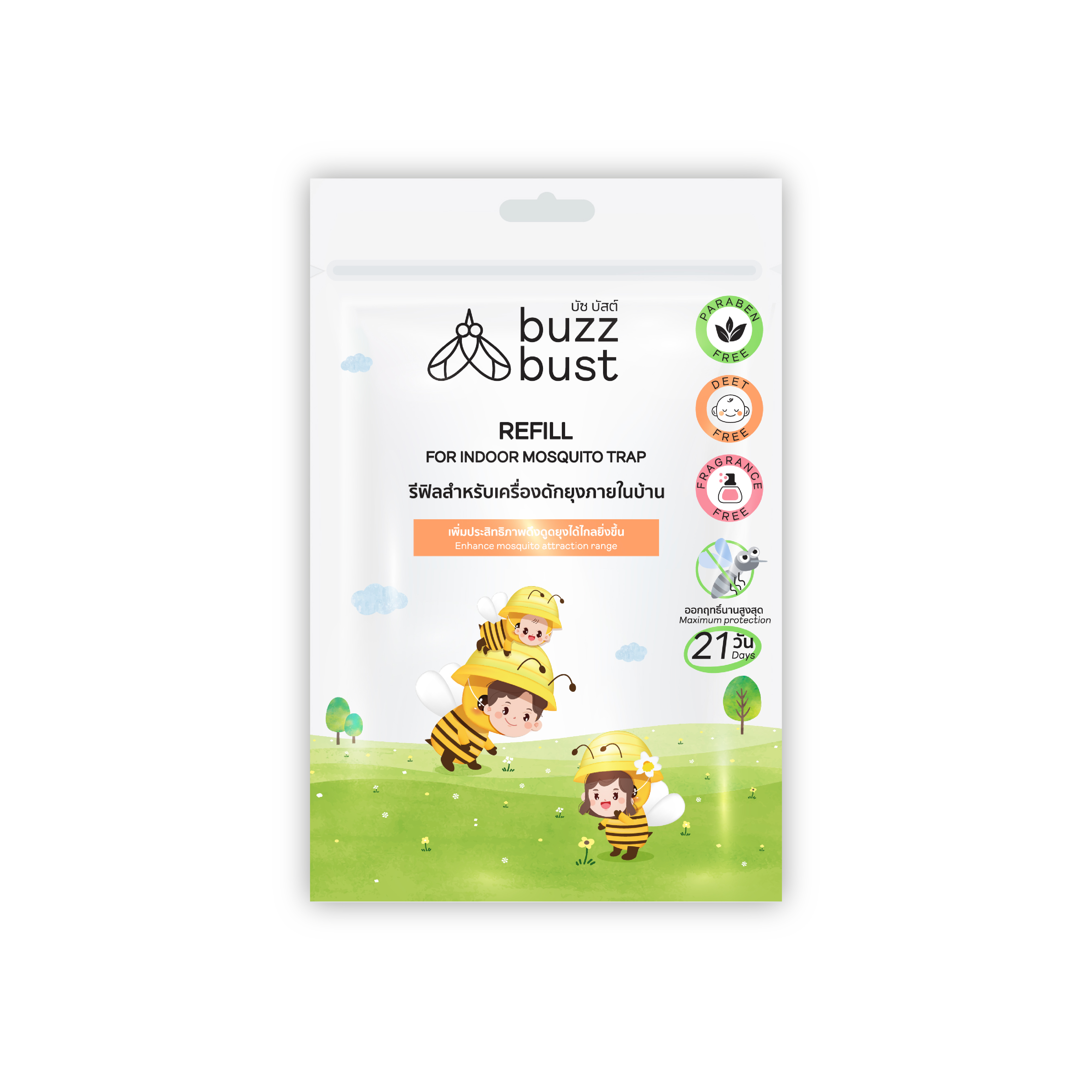 BuzzBust รีฟิลกลิ่นล่อยุงสำหรับเครื่องดักยุงไฟฟ้าในบ้าน รุ่น Light Guardช่วยเสริมประสิทธิภาพการดักจับยุงด้วยนวัตกรรมกลิ่นเลียนแบบมนุษย์ วิธีการใช้งาน 1. เจาะรูแผ่นฟอยล์อะลูมิเนียมเพื่อให้ผลิตภัณฑ์ส่งกลิ่นออกมาสู่ภายนอก 2. นำไปวางในช่องระบายอากาศของเครื่องดักยุง เพื่อประสิทธิภาพการทำงานสูงสุด คำแนะนำในการใช้งาน