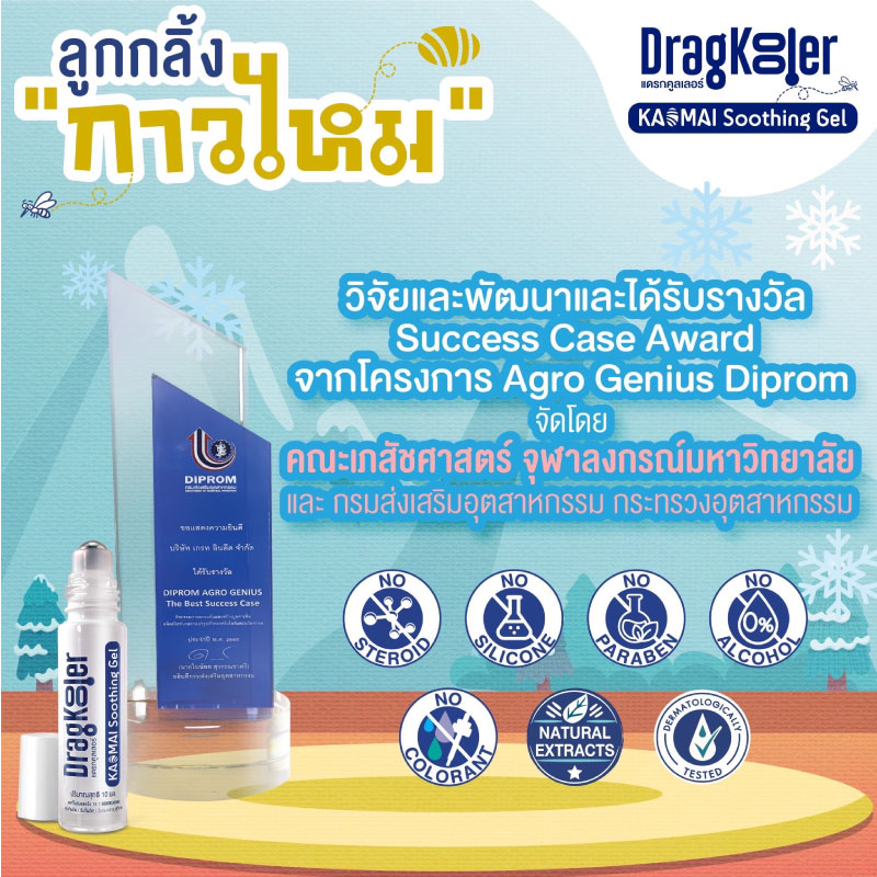 เย็น..หยุดคัน ด้วย..ลูกกลิ้งกาวไหมDragkooler ใช้ทาหลังยุงหรือแมลงกัด เพื่อช่วยลดคัน ลดบวม ลดรอยแดงรอยดำ