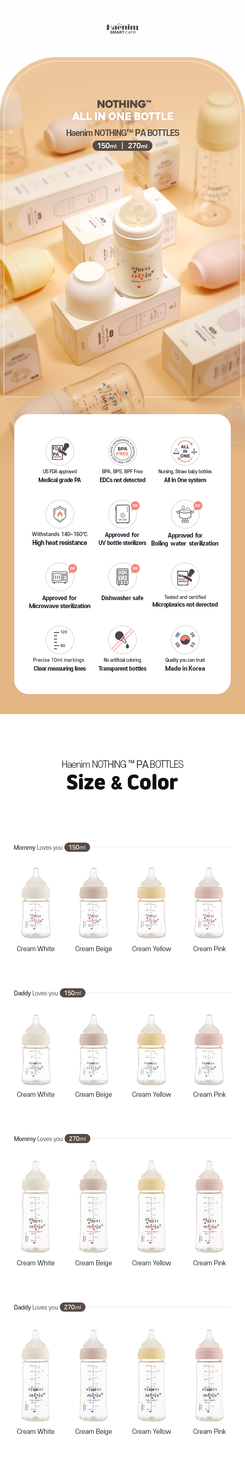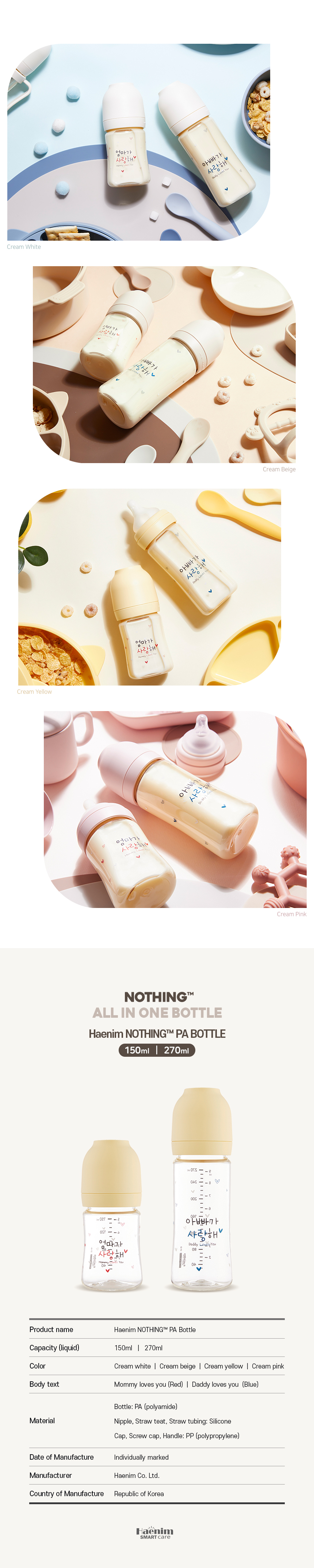 ขวดนม PA - HAENIM รุ่น NOTHING™ ขนาด 5 ออนซ์ (ไม่รวมจุกนม)