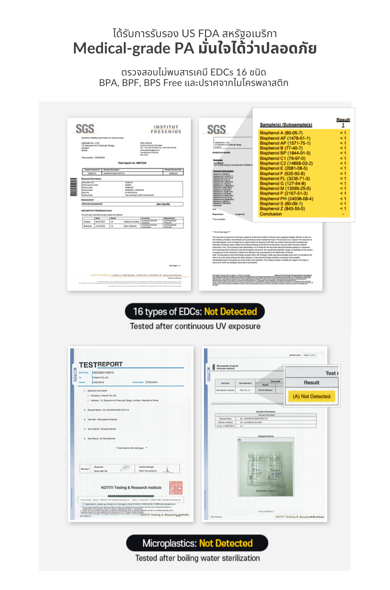 ผ่านมาตรฐานสากล BPA free, BPS free ปลอดภัยไร้สารปนเปื้อน