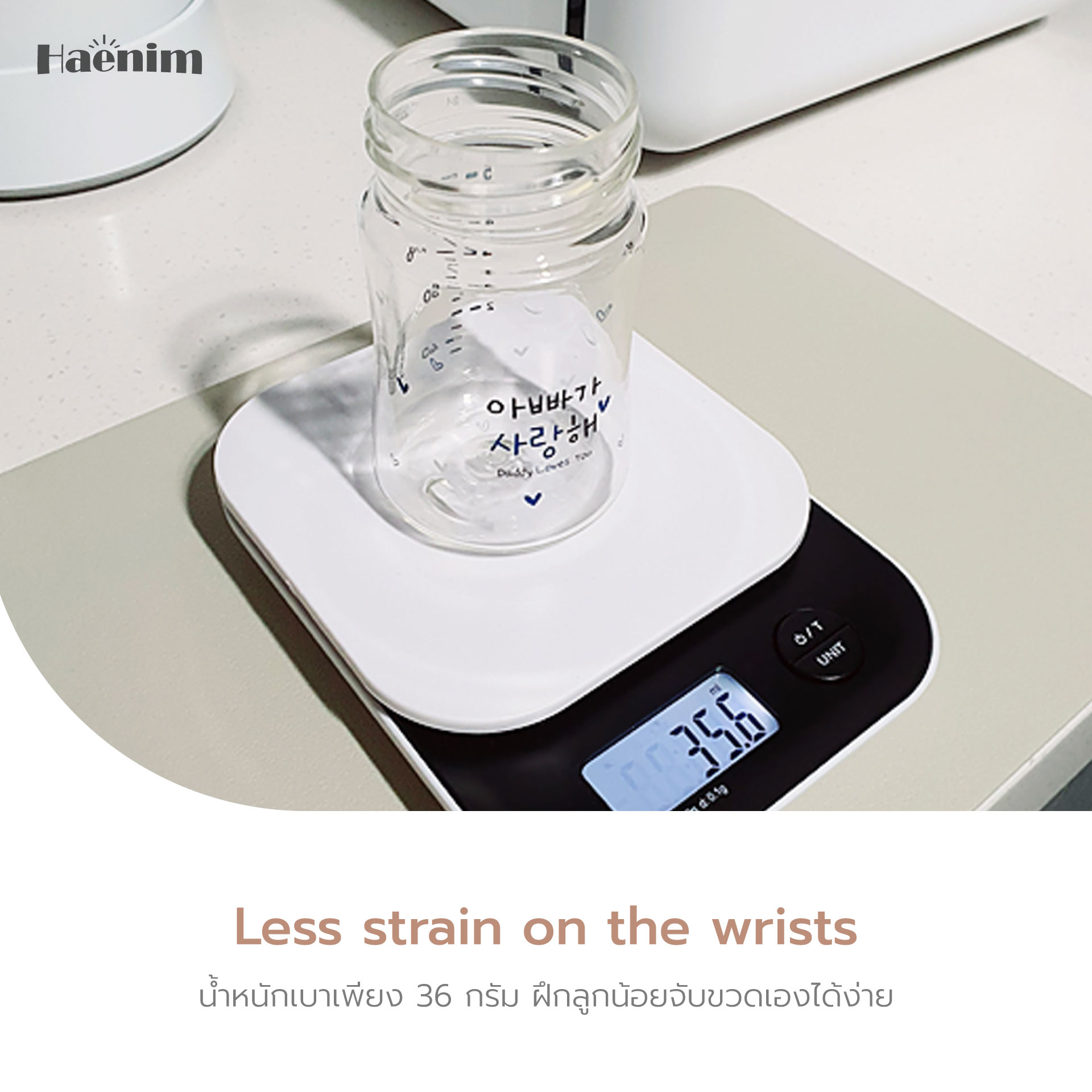 ขวด 5 ออนซ์ น้ำหนักเบาเพียง 36 กรัม ช่วยลูกน้อยฝึกจับเองได้ง่าย