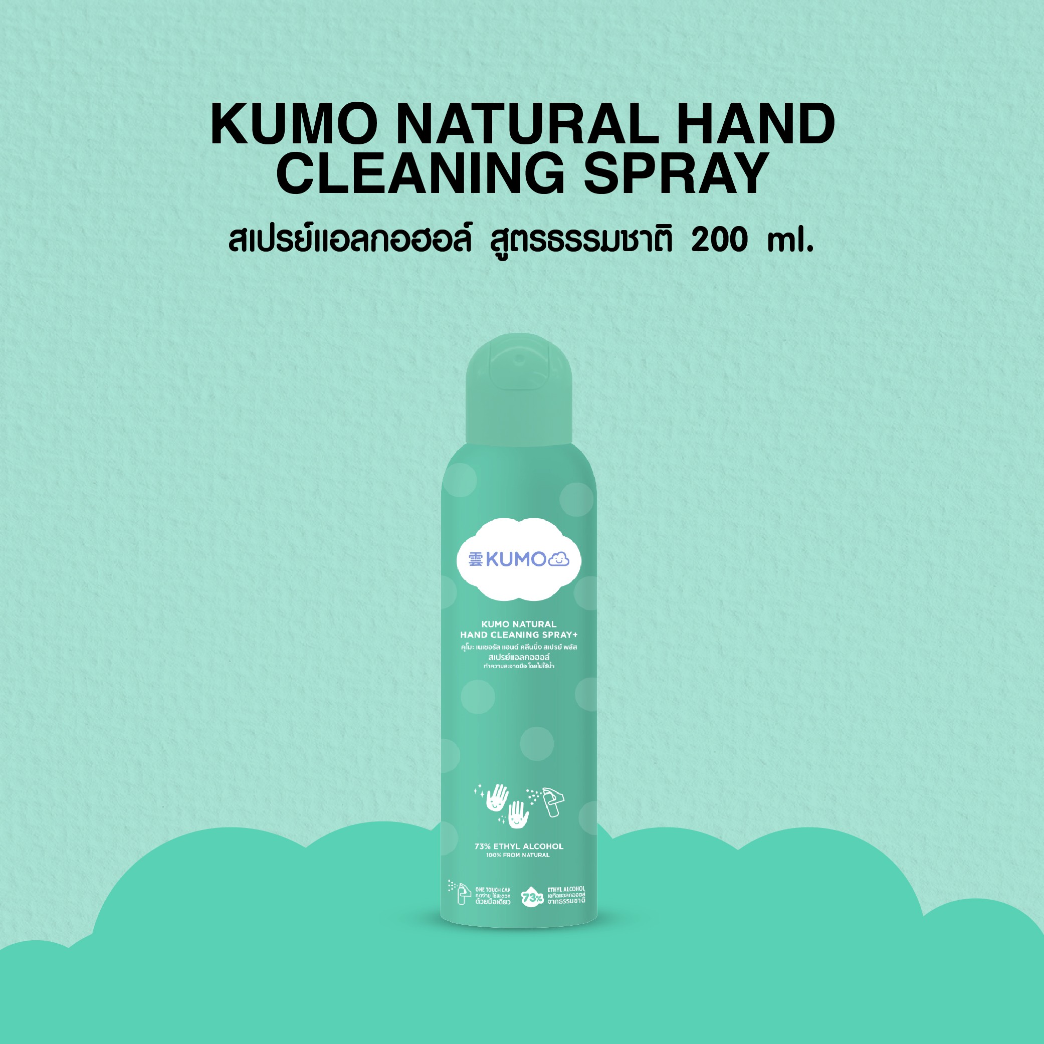 Kumo สเปรย์แอลกอฮอล์ 73% ผลิตจากแอลกอฮอล์ธรรมชาติ ได้รับมาตรฐาน Food grade