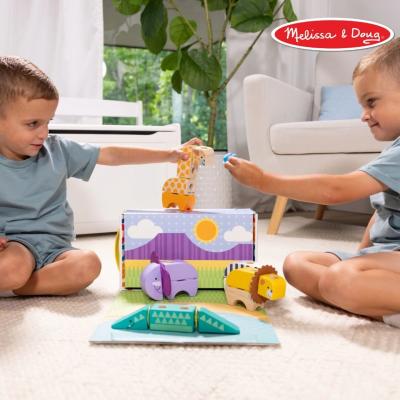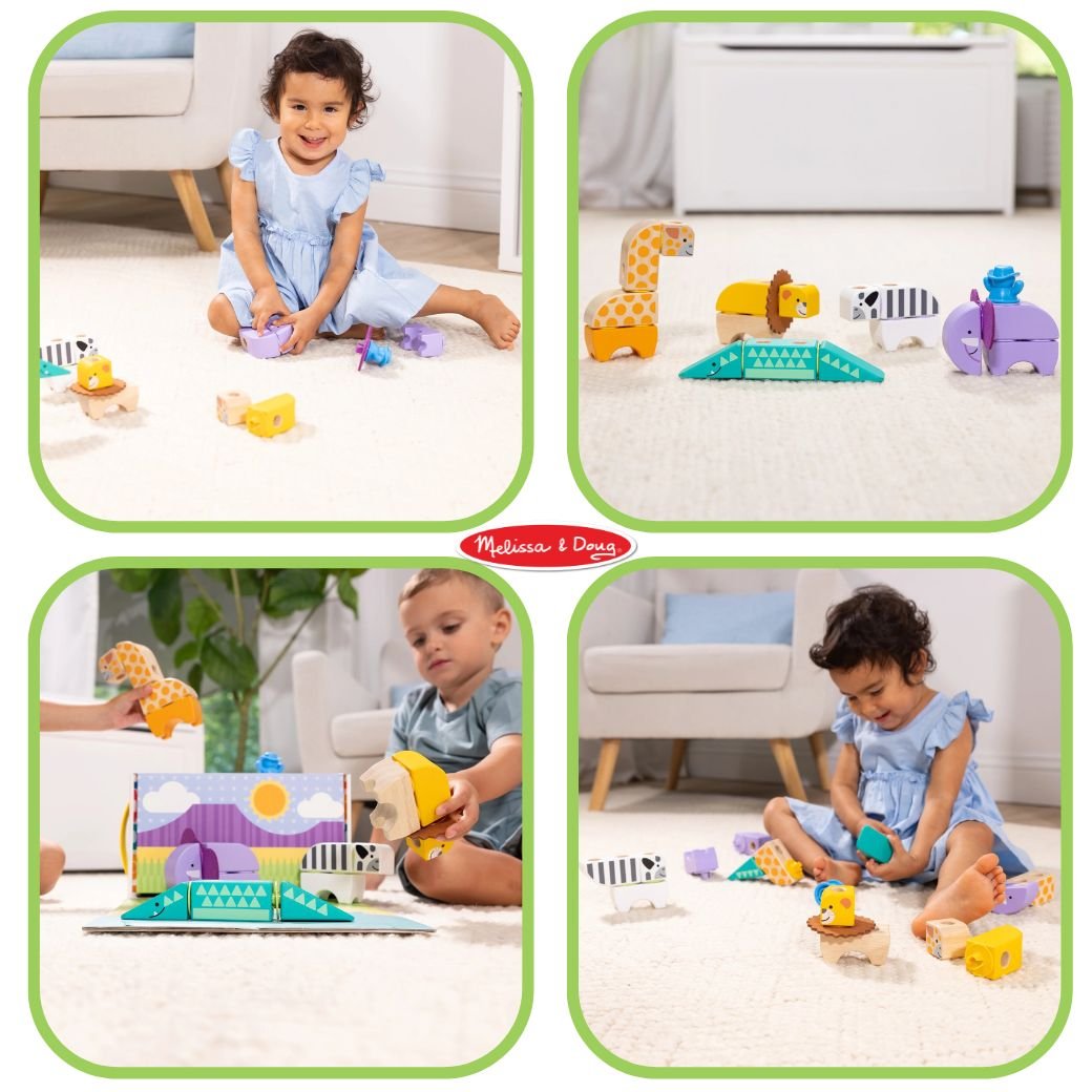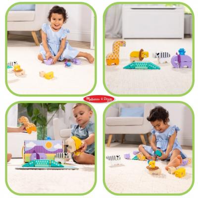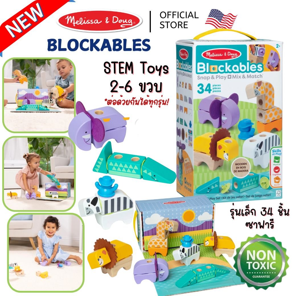 MELISSA&DOUG บล๊อกไม้ ตัวต่อ ชิ้นใหญ่ รุ่นซาฟารี 34 ชิ้น