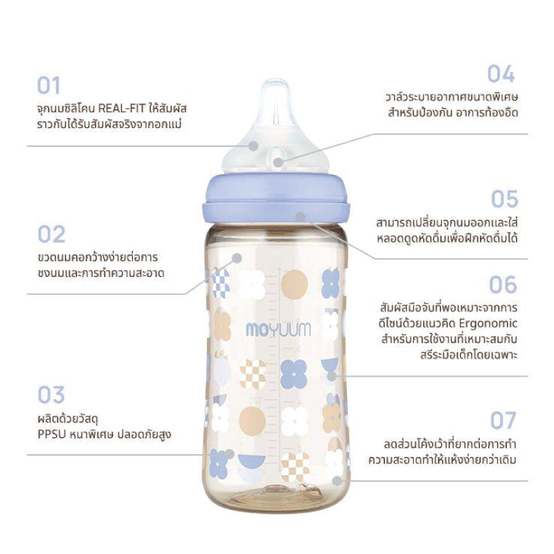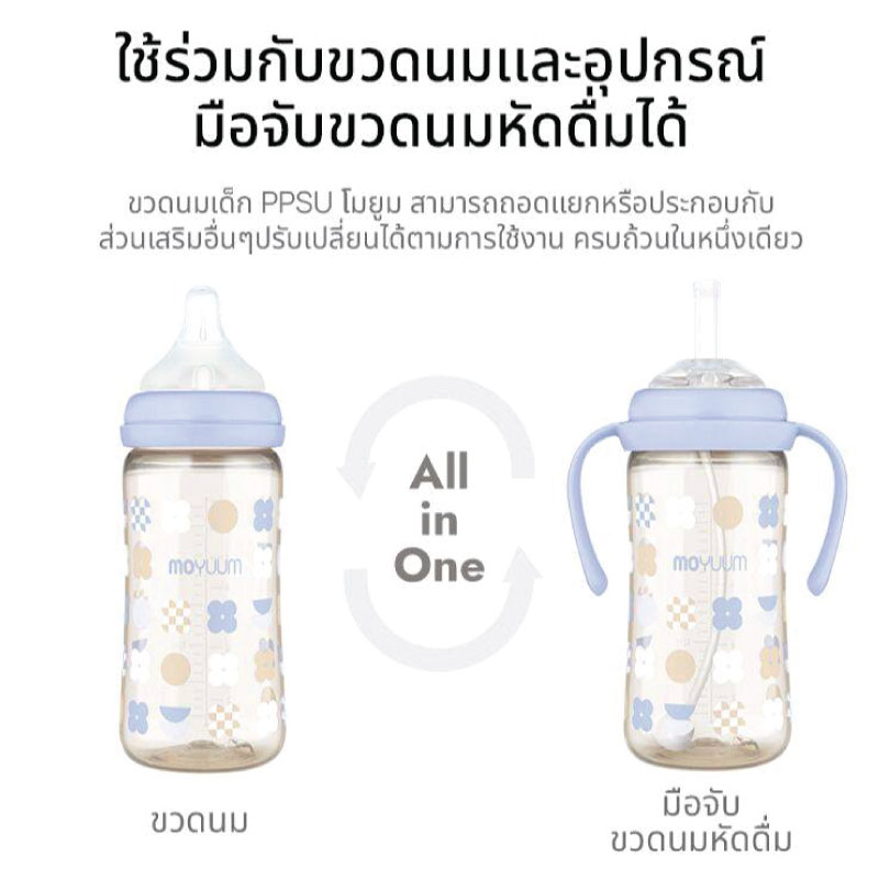 MOYUUM ขวดนมเด็ก PPSU โมยูม ALL IN ONE ขนาด 270ML พร้อมจุก stage 2 สำหรับ 2-5 เดือน