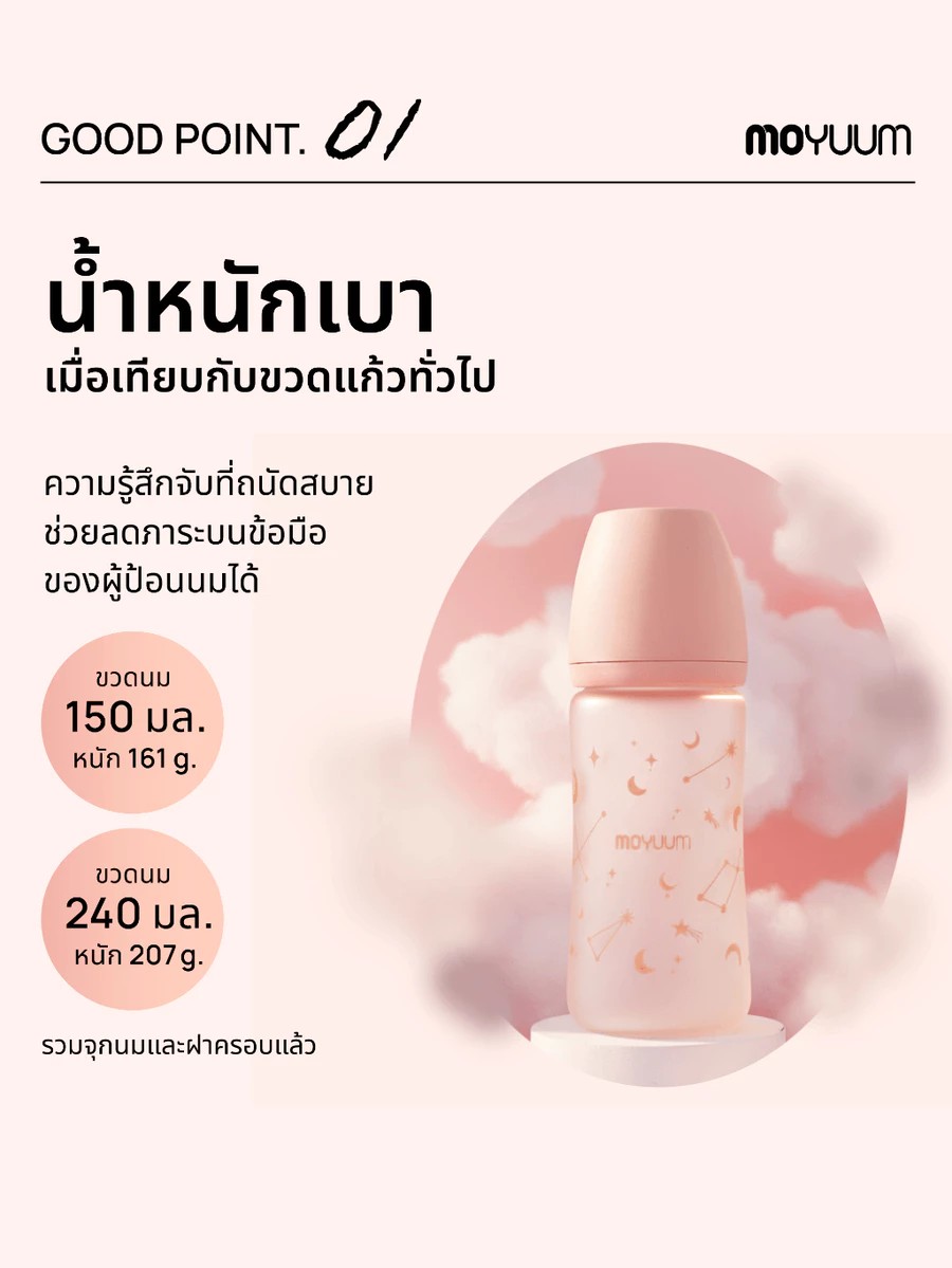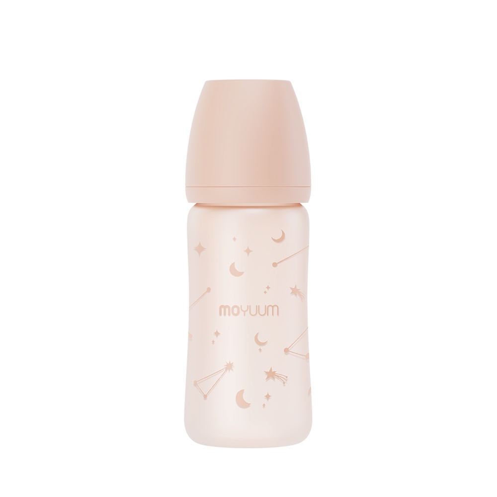 MOYUUM ขวดแก้วเคลือบซิลิโคน ลาย Twinkle 240ml พร้อมจุก Real-Fit Stage 2 (3-6m)