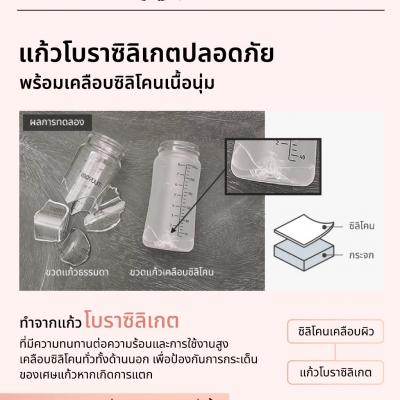 ขวดแก้วทำจาก โบราซิลิเกต ที่มีการทนทานติ่อความร้อนสูง เคลือบซิลิโคลนทั่วทั้งด้านนอก เพื่อป้องกันการกระเด็นของเศษ แก้ว