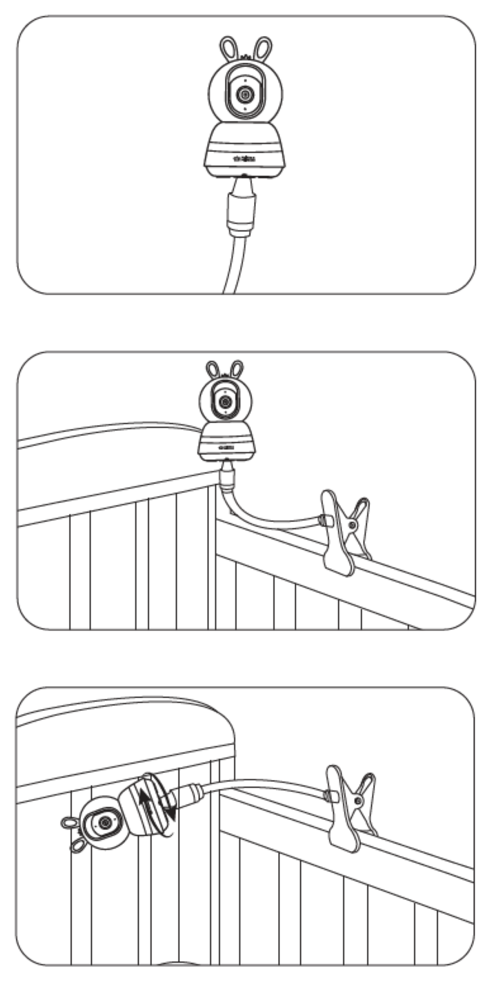 ติดตั้งง่ายทุกที่ หนีบกับโต๊ะ เตียง เปล หรือบริเวณที่ต้องการ เฝ้าดูลูกน้อยผ่านกล้อง