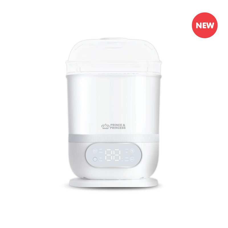 เครื่องนึ่งขวดนม STEAM & DRY แบรนด์ PRINCE & PRINCESSนึ่งฆ่าเชื้อพร้อมอบแห้ง จัดเก็บปลอดเชื้อมั่นใจ 48 ชม.ฟังก์ชั่นพิเศษ อุ่นนมให้ลูกน้อยมี 8 โหมดทำงานอัจฉริยะ เป็นได้มากกว่าเครื่องนึ่งขวดนมสำหรับ นึ่งขวดนมพร้อมอบแห้ง
