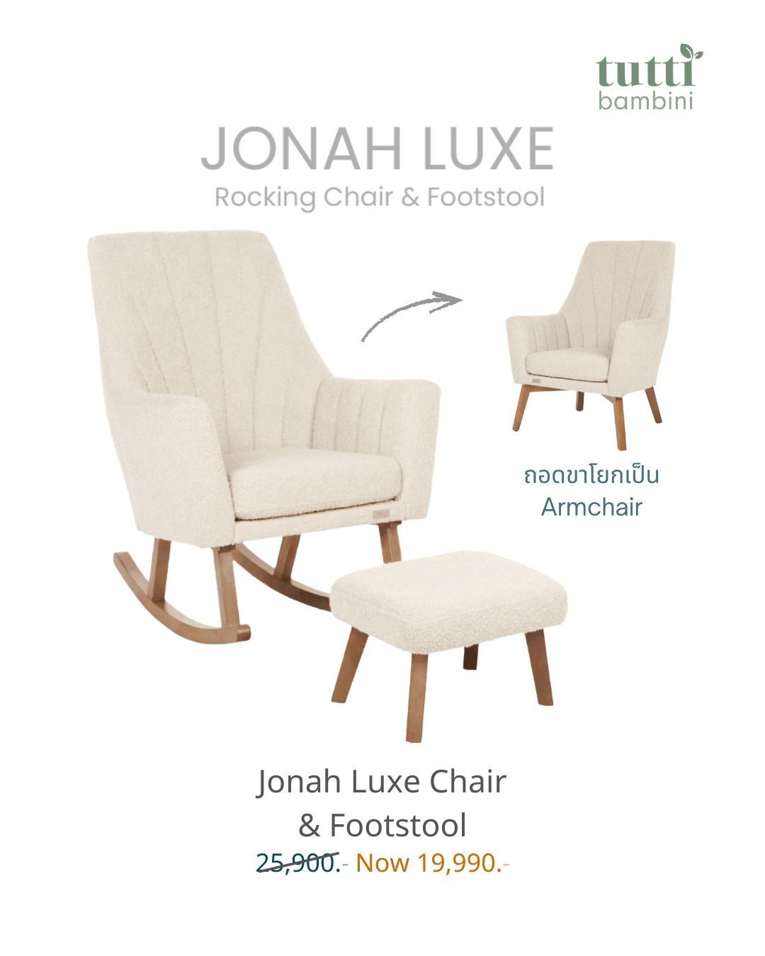 เก้าอี้รุ่นนี้สามารถถอดขาโยกออก เพื่อเปลี่ยนเป็นขาเก้าอี้ Armchair แบบไม่โยกได้